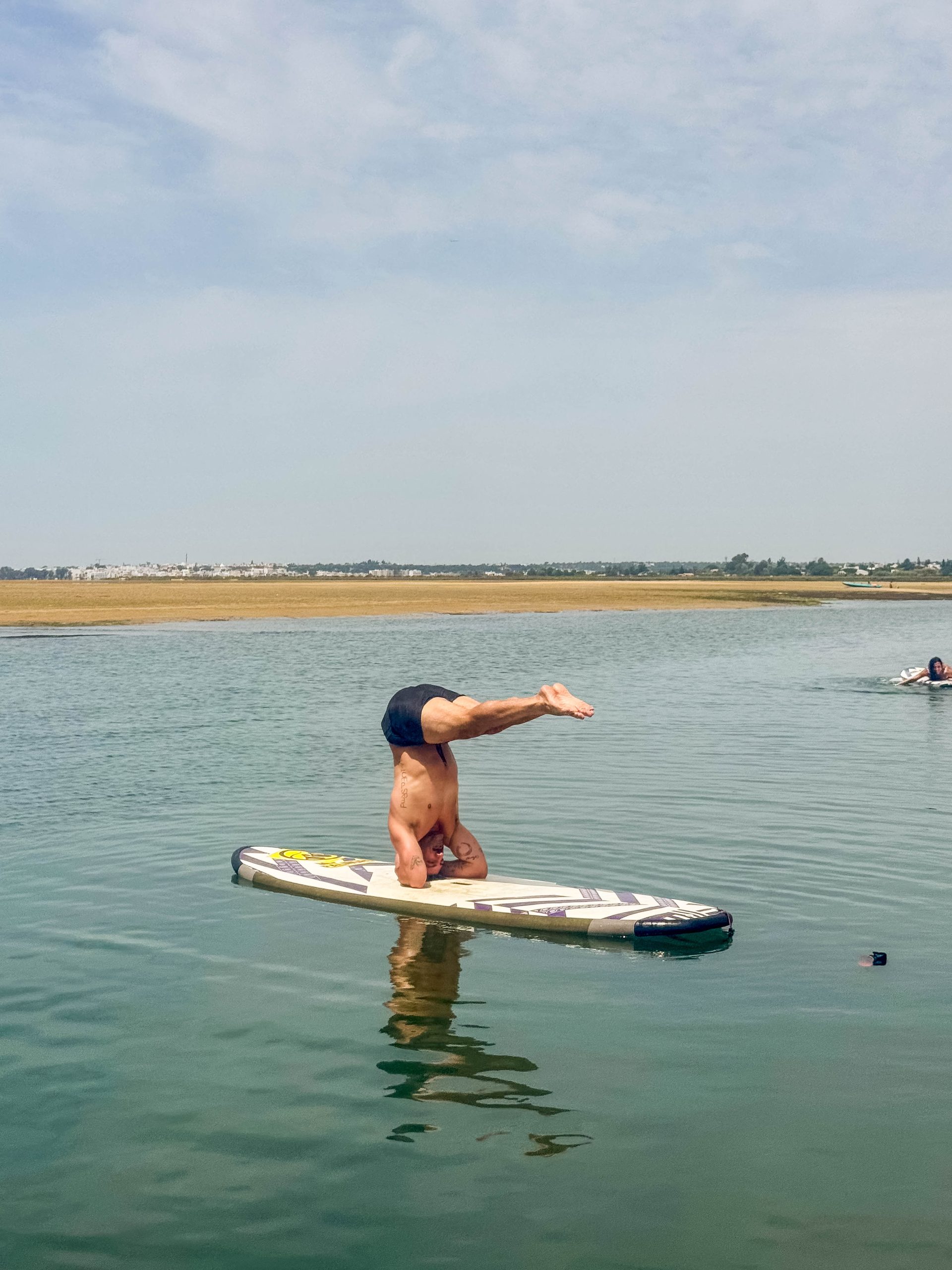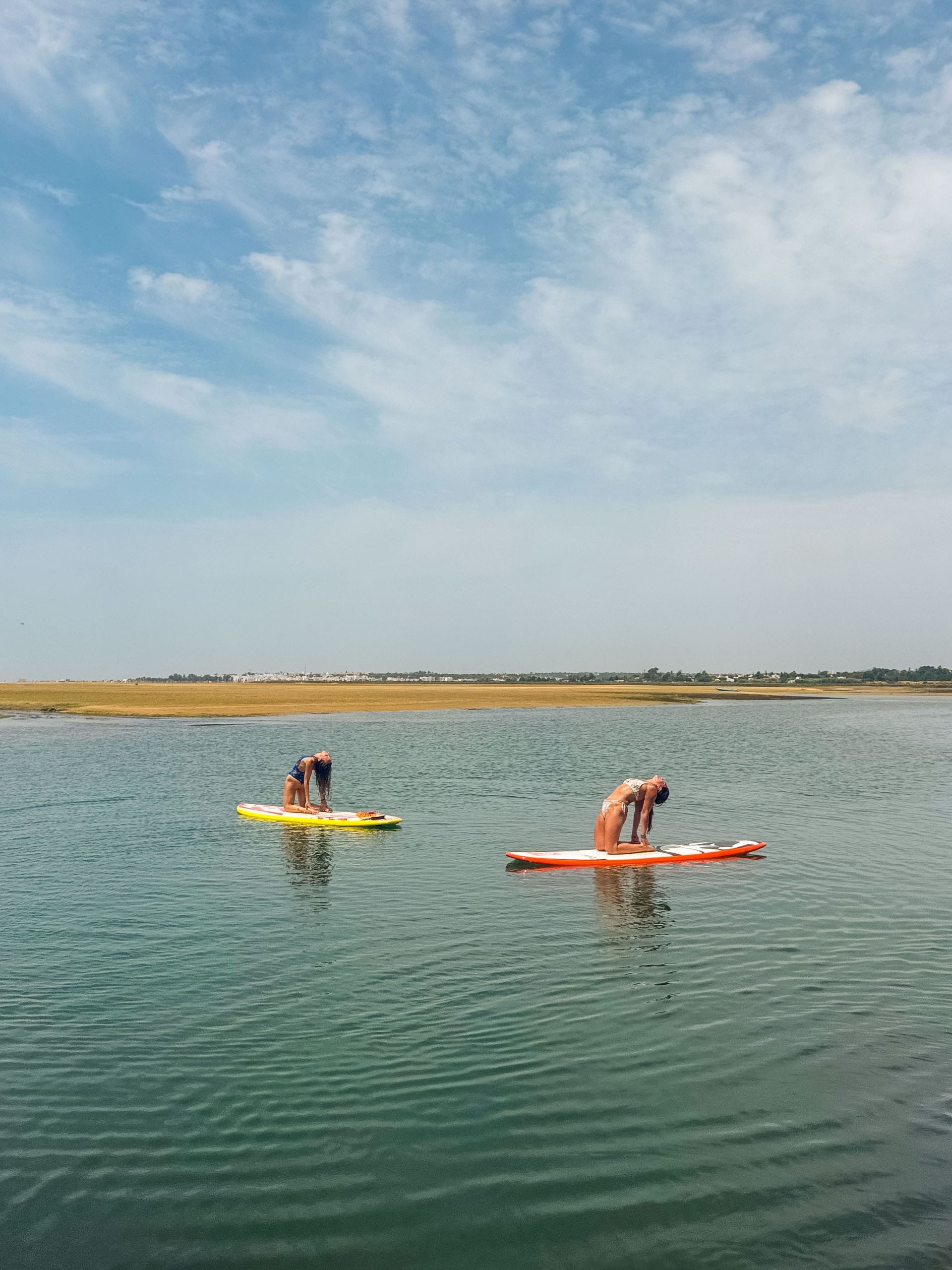 Retiro de yoga exclusivo en Portugal. Alojamiento en una villa de lujo con cocinera y transporte privado. Yoga diario con clases temáticas, talleres de crecimiento personal, visitas a las playas paradisíacas de Faro en ferry y Paddel surf en la Ría.