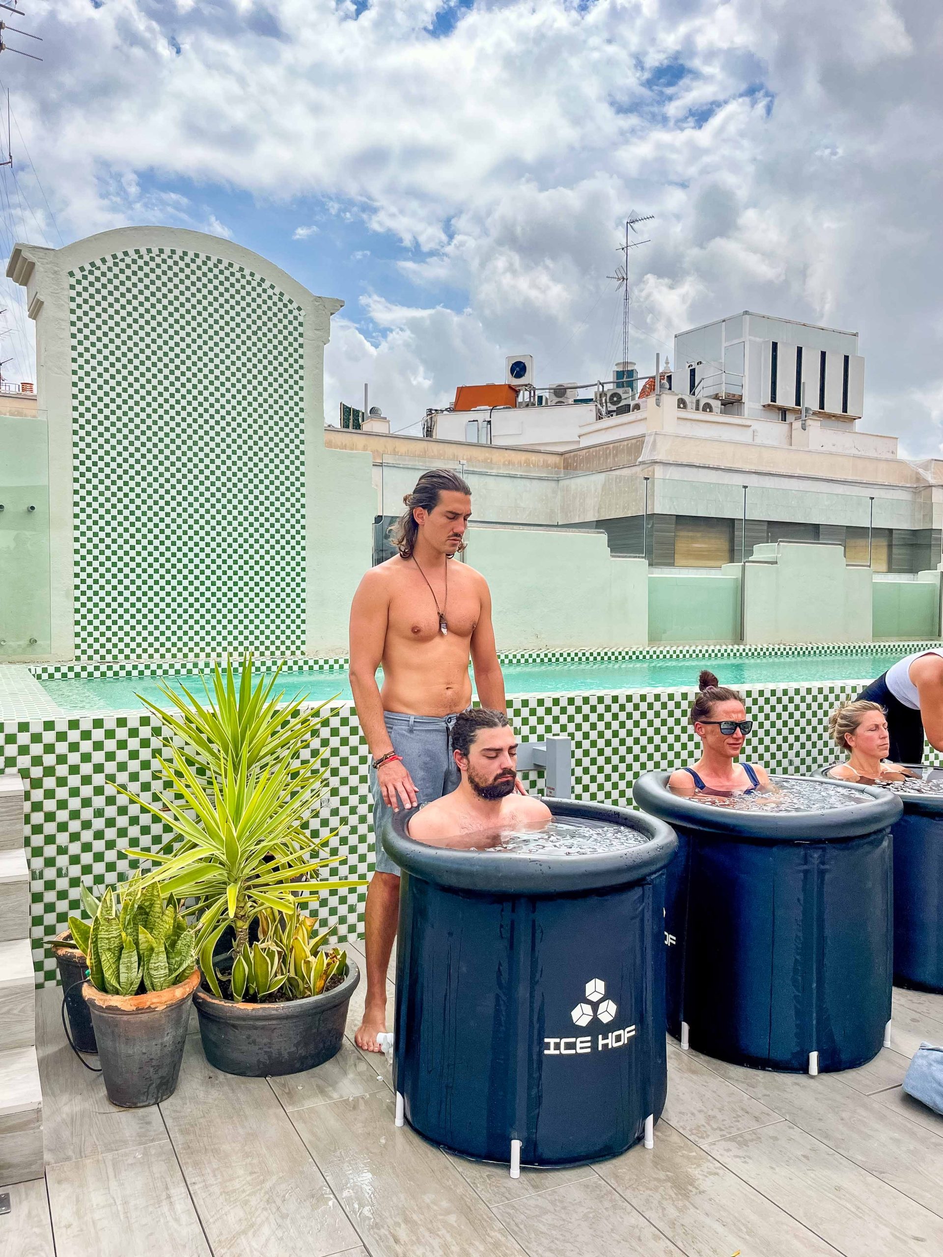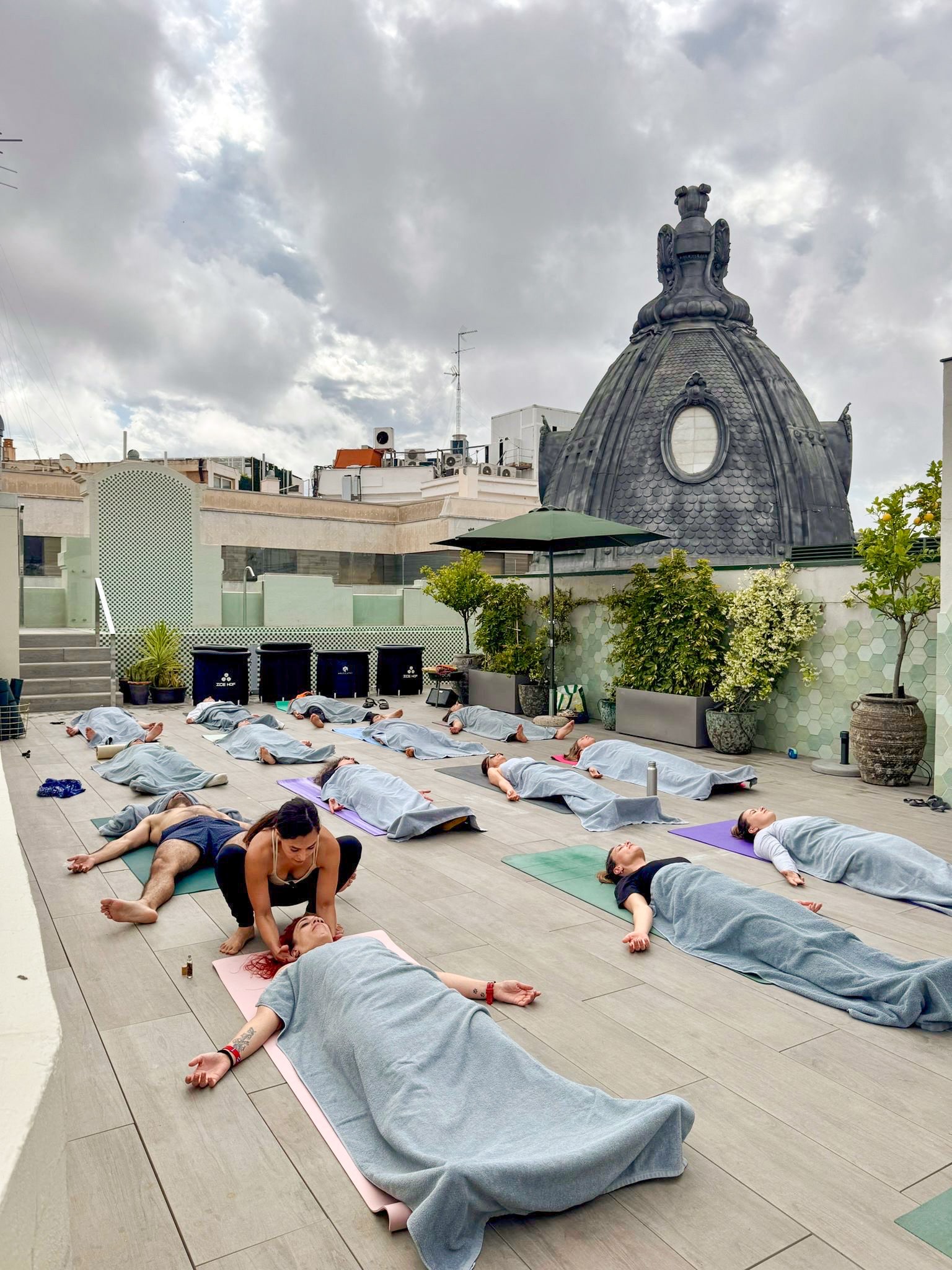 Desarrollo personal en el Palacio de Santa Clara. Clase de yoga con Carla, Breathwork con Roshi para prepararnos para el baño de hielo y un delicioso brunch preparado por el hotel.
